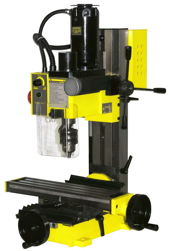Брали на учебную базу для студентов. Особых свершений от станка не ждали, свои задачи выполняет на отлично. Есть защита от бестолковых детей – пока крышку двигателя не захлопнешь, не запустишь. Обратите внимание, что при подъеме столика по стойке он немного отклоняется, т.е. сначала перемещайте стол, потом крепите заготовку.