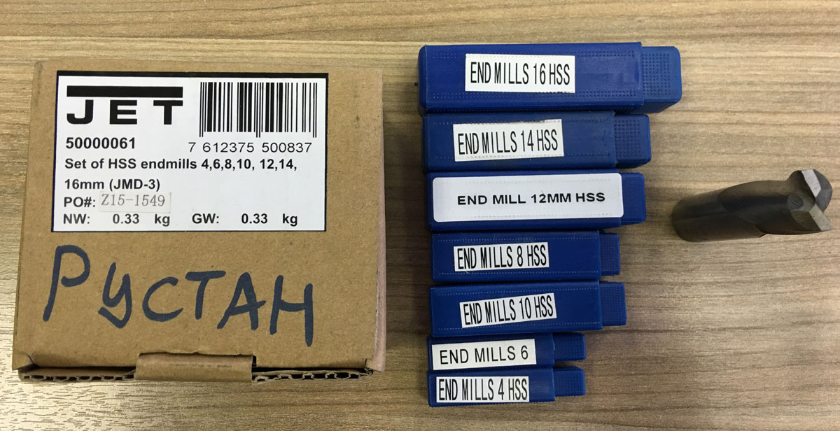 Набор концевых фрез представляет собой вспомогательную оснастку для работы на станочном фрезерно-сверлильном оборудовании, которое выпускает компания JET. Оснастка рассчитана для комплектации моделей станков JMD-1, JMD-X1, JMD-1L, JMD- 2, JMD-16A, JMD-20LA, JMD- 20LA DRO и JMD-3T, выполняющих обработку заготовок различной конфигурации. В набор входят фрезы диаметров 3,4,5,6,8 и 10 мм, изготовленные из быстрорежущей стали. Фрезы обеспечивают возможность осуществлять обработку внешних поверхностей, изготавливать внутренние отверстия и пазы различной конфигурации.