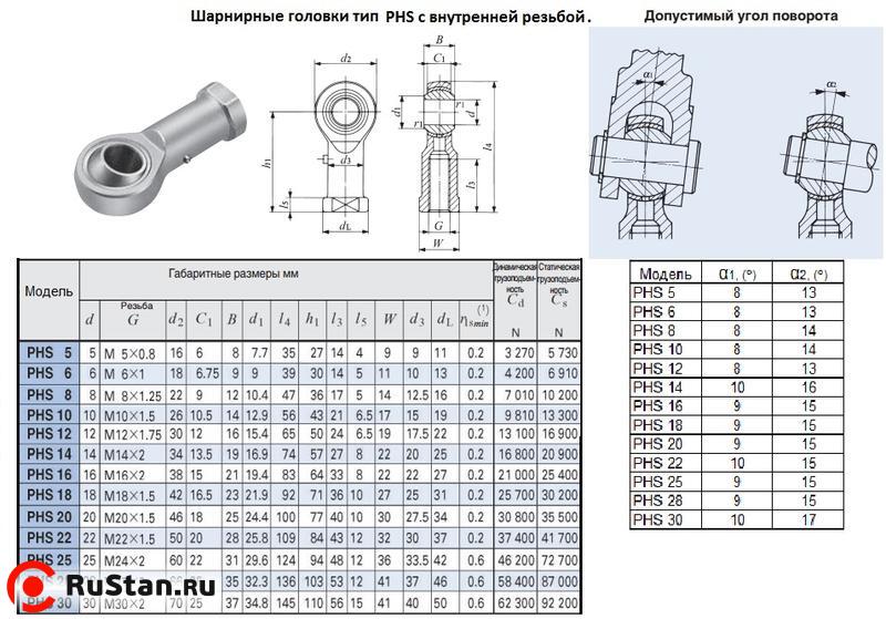 Головка шарнирная PHS25 d 25,0х31,0х124мм с внутренней резьбой М 24х2,0 "CNIC"
