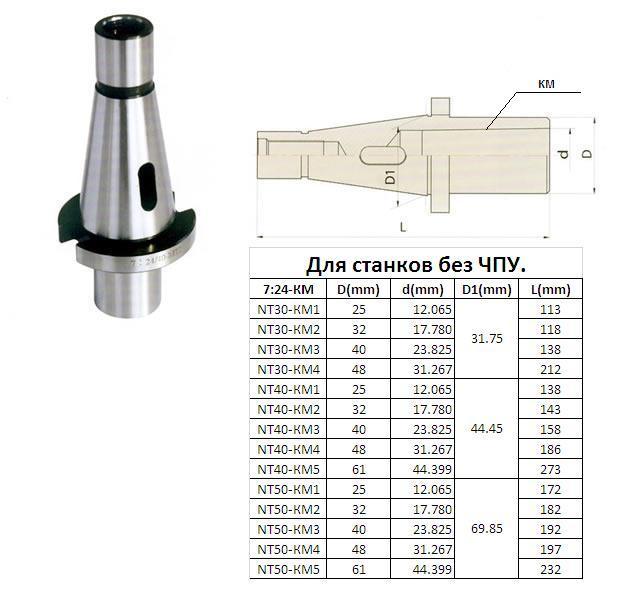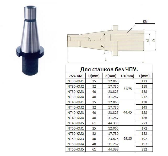 Втулка переходная с хв-ком 7:24-50 на КМ1 для концевых фрез без лапки без для станков без ЧПУ "CNIC"
