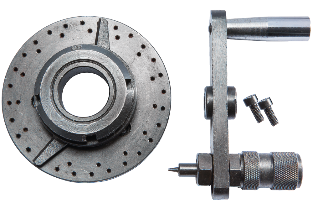Поворотный стол диаметром 100 мм является одним из вариантов основной оснастки, используемой для обработки деталей и заготовок на фрезерно-сверлильных станках модели JMD-1, JMD-X1, JMD-1L, JMD-2, JUM-X2, JMD-16A, JMD- 20LA и JMD-20LA DRO. Стол имеет поворотный механизм, обеспечивающий круговое вращение на 3600 вокруг оси стола. Приспособление обладает техническими возможностями для позиционирования обрабатываемой детали в широком диапазоне, как в горизонтальном, так и в вертикальном положении. Поворотный стол имеет центральной отверстие с конусом МТ2 и Т-образные углубления для установки прихватов.