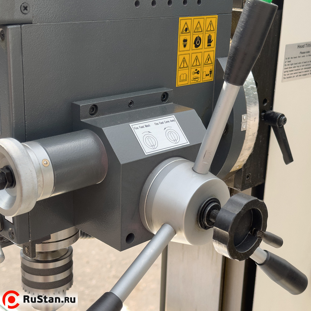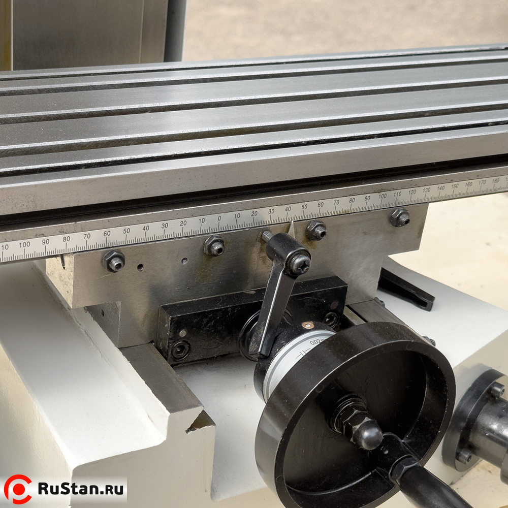 - Точное перемещение шпиндельной бабки, продольное и поперечное перемещение рабочего стола контролируется по лимбу с ценой деления 0.02 мм.