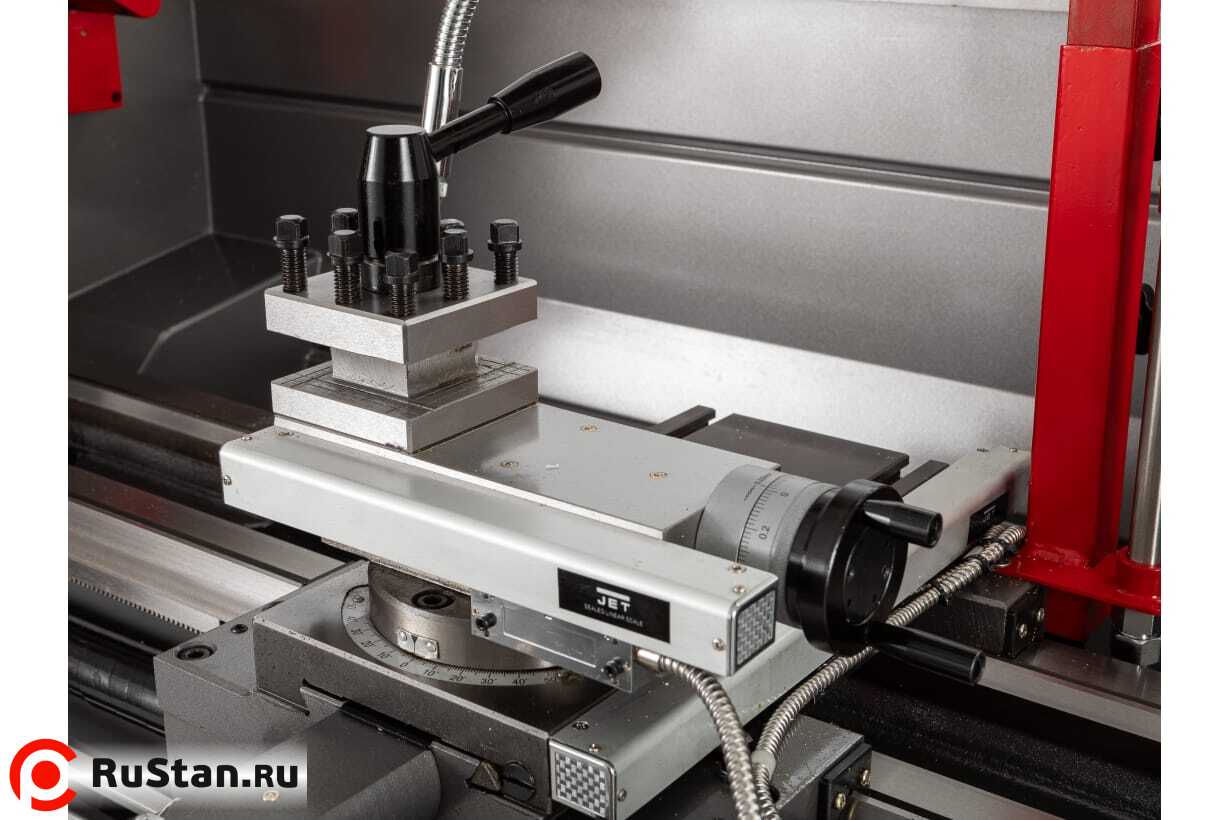 JET BD-13G имеет 15 типов продольных и поперечных подач в автоматическом режиме, а также позволяет нарезать 18-ть видов метрических и 13-ть видов дюймовых резьб. Для удобства нарезания длинных резьб, станок укомплектован резьбоуказателем. На станке предусмотрена возможность нарезания правой и левой резьбы