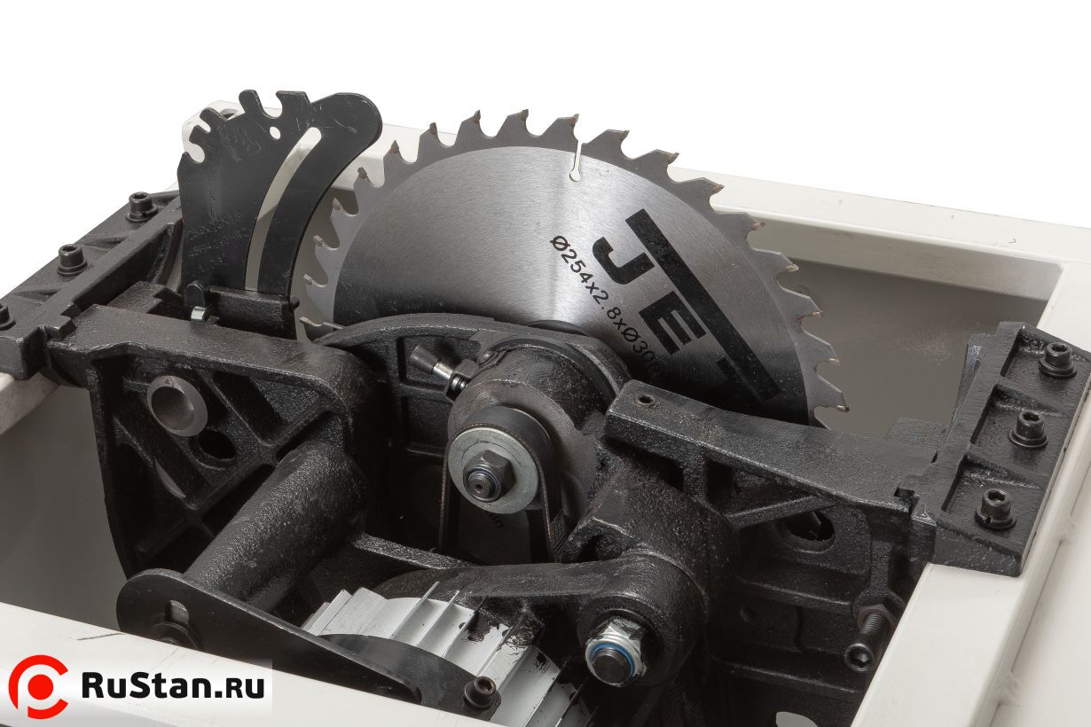 Система безопасности станка выполнена на высоком уровне. Здесь используется подпружиненная зубчатая защита от обратного удара, а также двухсторонний прозрачный экран, полностью закрывающий пильный диск. Экран не мешает обзору зоны пиления и легко поднимается над заготовкой с любой стороны диска — как с двух одновременно, так и с одной, в зависимости от геометрии детали. Безопасность оператора — приоритет для марки JET. Если защитные элементы не требуются во время работы (например, при пазовании), для каждого из них предусмотрено отдельное место в органайзере на корпусе станка. Порядок в мастерской — залог качественного результата.