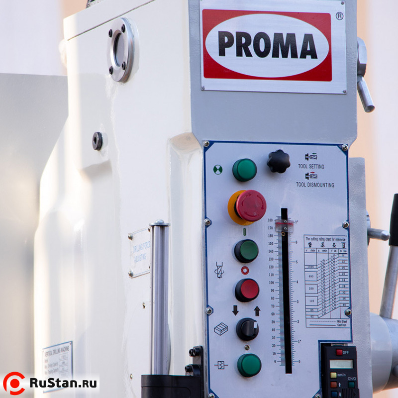 Станок PROMA В-1840G/400 используется для сверления, зенкования, развёртывания отверстий, нарезания резьбы и расточки. Он обладает преимуществами обработки отверстий большого диаметра и широким диапазоном обрабатывающих деталей, что позволяет использовать его не только в производственных, но также и в ремонтных цехах.