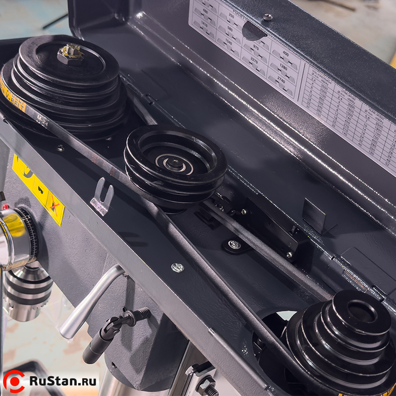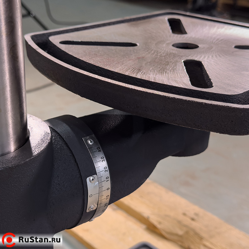 Особенностью представленного оборудования является дополнительная возможность выбора направления вращения шпинделя. Кроме этого, станок снабжен радиальными подшипниками. Существует возможность обработки деталей под различными углами за счет поворота стола с помощью поворотной цапфы (угол поворота — 360 град.), а также наклона стола на 45 градусов. Глубина сверления может регулироваться в зависимости от поставленных задач. Рабочая зона станка — с подсветкой.