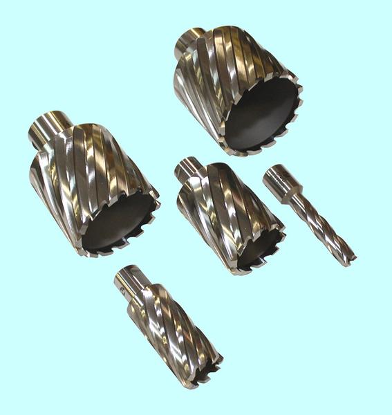 Все кольцевые быстрорезы Rotabroach с хвостовиком Weldon имеют сквозное отверстие под направляющий штифт (пилот), центрирующий сверло и выталкивающий керн (кусок металла, остающийся в полости сверла после работы над отверстием), могут использоваться с большинством сверлильных станков на магнитном основании.
